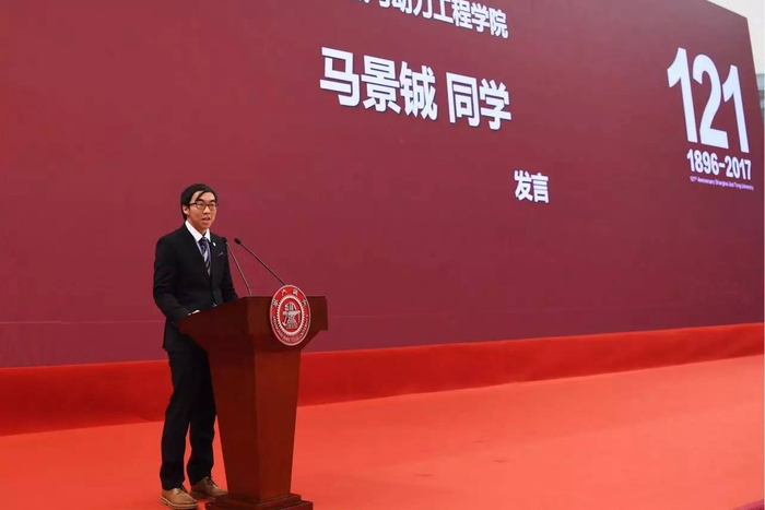 学生代表、机械与动力工程学院马景铖和大家分享了自己的求学经历。“选择交大,就选择了责任”,在漫漫求学路上,是交大教会他勤于实践、敢于创新,也是交大给了他深入学习、投身科研的志向。如今,马景铖也将踏上和钱学森等老校友一样的留学之路,老一辈学长们的精神时刻激励着新一代的交大人,不忘勤奋治学,努力充实知识能力,担负起兴盛中国的责任。