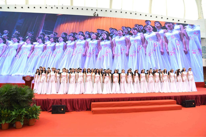 据了解,为了表达交大学子对母校的真挚感情,会场的座位经过精心排布,摆出大写字母“LOVE SJTU”字样。如果把这几个字母向右旋转180°,呈现出的形状从左至右、从上到下依次是凯旋门、纪念碑、第一餐饮大楼、电院群楼、东中院教学楼、老图书馆、交大留园餐厅、图书信息楼,这八大建筑象征着交大学子在学校里“衣、食、住、行、学”的青春历程,更是交大121年不断发展求索的见证。