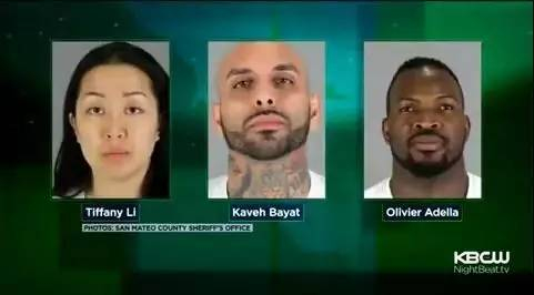 ▲三名嫌犯从左至右:李某、博雅特、阿德拉 图片来源:圣马特奥郡警长办公室