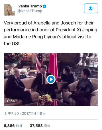其实伊万卡一直在培养子女的中文能力,所以为习大大表演中文歌曲也算一次汇报演出,既表现了子女的中文水平,还是亲和力十足的外交手段。