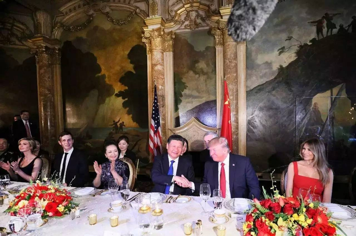 习近平与特朗普在海湖庄园餐厅共进晚餐。