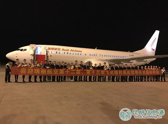 昆明信息港讯 记者上官艳君 4月9日,瑞丽航空从美国西雅图波音公司新引进的两架波音737-800客机,分别于02:25、02:30降落昆明长水国际机场。至此,瑞丽航空机队规模达到13架,进入两位数时代。