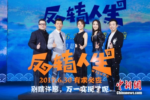 中新网北京4月9日电(记者 张曦)9日,喜剧电影《反转人生》在北京举行“有求必应”许愿大会,导演伍仕贤携主演夏雨、闫妮、潘斌龙、特别出演宋茜首度全员亮相,揭秘台前幕后的种种细节。