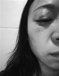 曹女士的右眼眶被打得红肿。记者 孙熳 摄