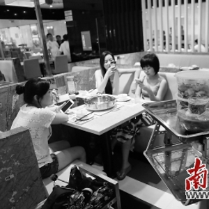 | 毕亚雷认为,服务机器人需求很大,但要抓住用户痛点。图为深圳一家火锅店内,机器人负责送餐。南方日报记者 朱洪波 摄 |