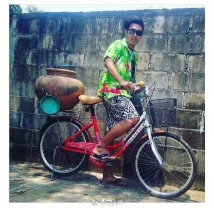 有泰国网友发图吐槽泰国皮卡车新规,泼水节不让皮卡车后方坐人,那我只能骑自行车进行泼水活动了。。。