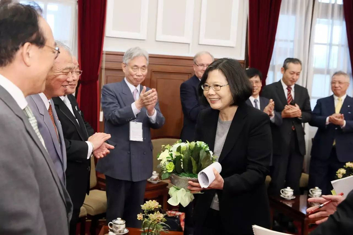 ▲2016年5月20日,蔡英文就职当天接见日本的“日华议员恳谈会”成员
