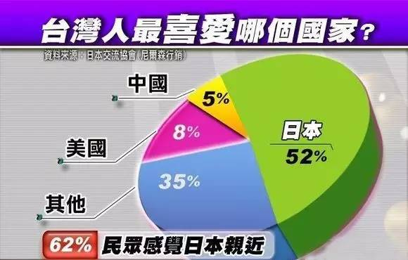 2016年12月12日,日本一家右翼媒体发布的一项民调结果显示,关于“你对亚洲哪个国家(地区)最感亲切”,59.1%的受访者选择“台湾”,高居榜首。该调查选取20-80岁的1000名日本人为对象,被认为颇具代表性。