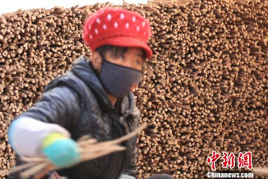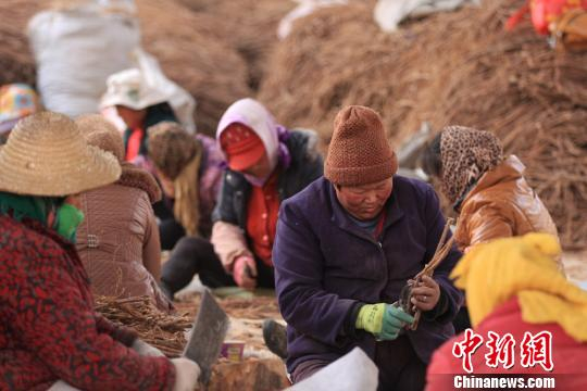 在甘肃陇南武都区,春耕前,许多留守妇女受雇于当地中药材经营者。陇南米仓红芪有限公司董事长朱全林近日接受中新网记者专访透露,红芪鲜货的采摘、加工等劳务,粗算下来每100吨红芪可带动周边农户增收70万至80万元。
