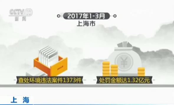 2017年1-3月,上海市共查处环境违法案件1373件,处罚金额达1.32亿元,分别较去年同期增长119%和173%,其中按日计罚10件,查封扣押44件,移送行政拘留6件,向公安部门移送涉嫌环境污染犯罪案件25件。