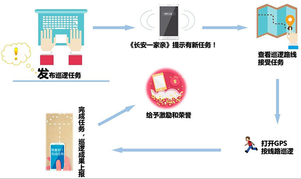 长安一家亲”平台及APP采用“互联网+群防群治”模式,并和智慧社区相结合,有效融合一键求助、群防群治、维稳巡逻、问题上报、积分奖励、群众宣传等功能,方便维稳工作的开展和辖区群众的参与。各行政部门也可在后台发布任务,辖区群众完成指定的任务或提交有效的线索可以获得积分、电子奖章、荣誉或其他奖励。而且该平台可开展问卷调查、问题反映等活动。