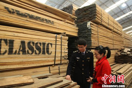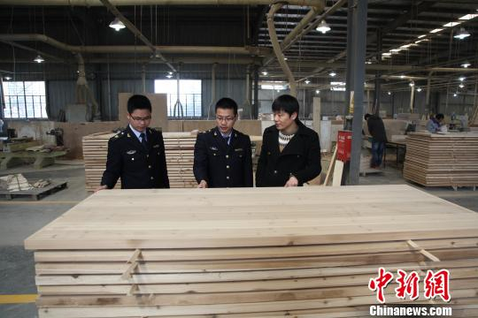 宁波检验检疫工作人员对木制家具出口企业进行日常监管。 胡鹏翔 摄