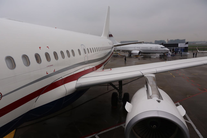 还有每次都跟波音公务机相隔不远的空客公务机,此次来参展的依然是ACJ319——ACJ系列中最受欢迎的版本。
