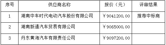 成交供应商名称:湖南中车时代电动汽车股份有限公司