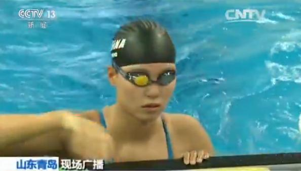 这次来到青岛后,傅园慧的第一个决赛项目是4×100米自由泳接力,参加这个团队项目的重要目的,就是为后面的主项仰泳比赛热身。赛前在开始适应泳池的时候,她刚下水游了一个来回,就出现了意想不到的小插曲。