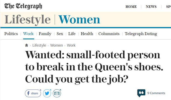 英国女王又招人,男士靠边站,脚大的女士也靠边!