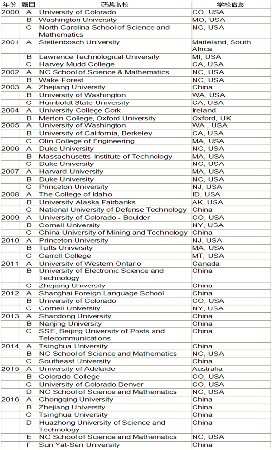 附:MCM/ICM比赛获奖列表