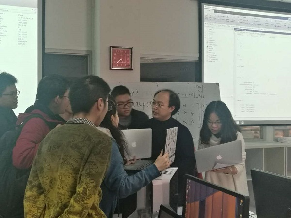 图2:巴黎高科学院牛一帅(右2)老师在为美赛参赛学生培训