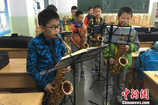 中新网兰州4月14日电 (记者 刘玉桃 李亚龙)下午5点多了,甘肃省兰州实验小学学生吕浤瑄并没有背上书包回家,而是取出长笛和同学一起练了起来,在老师指导下,吕浤瑄和乐团的同学配合演奏乐曲。