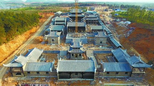 4月7日,道县清塘镇楼田村,建设中的濂溪书院。该书院于2016年7月异地重建。何红福 何上进摄影报道