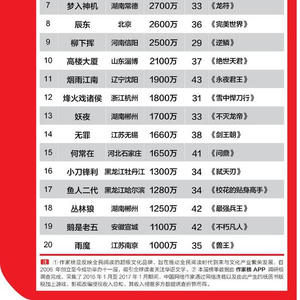 ▲传统作家富豪榜(图片来源:中国作家富豪榜)