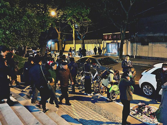 夜深,上海话剧艺术中心散场时。 舒抒 摄