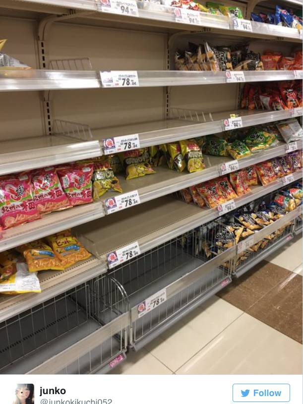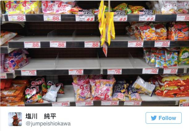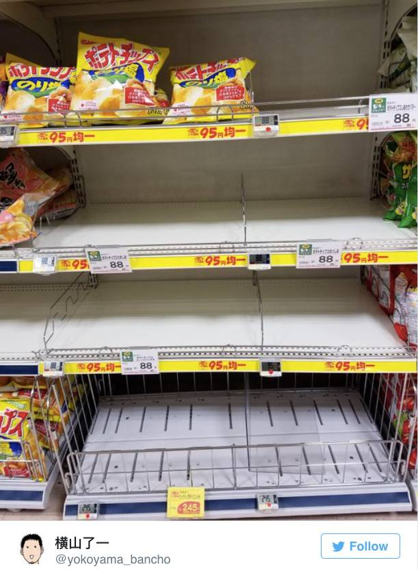 而在日本的超市里,各类薯片也是抢购一空。