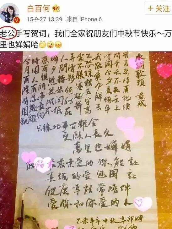 2015年9月至今,尤其是2016年后,白百何仍多次在微博以“老公”称呼陈羽凡。