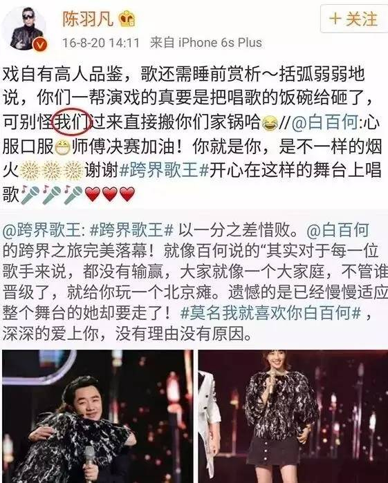 而陈羽凡则多次帮白百何宣传新戏、综艺节目……
