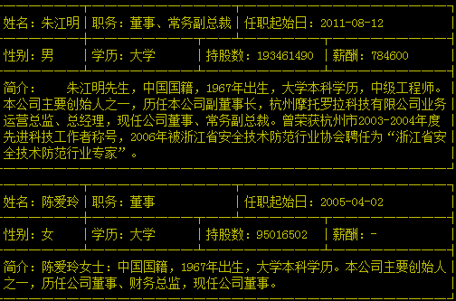 从上图不难看出,陆毅夫妇出资的宁波嘉睦承久出资142.9万元,是仅次于申屠美良的第二大股东。更值得注意的是,杭州维讯机器人科技公司自然人股东朱江明和陈爱玲,疑似是现有上市公司大华股份的高层。而大华股份公开的高官名录中是这样写的: