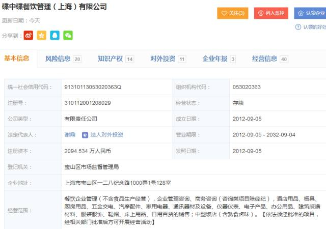 NO4。碟中碟餐饮管理(上海)有限公司