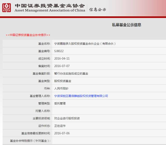 根据基金业协会备案显示: