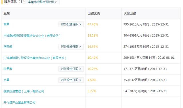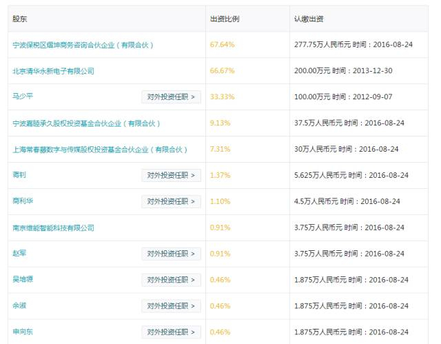从其公布的信息显示,陆毅夫妇是在去年8月24日认缴出资了37.5万元,占公司出资比例的9.13%,与其同时进入的还有上海常春藤数字与传媒股权投资基金合伙企业(有限合伙)。
