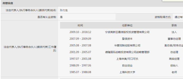 而宁波嘉睦的管理人也值得注意,其法人代表为孙力生。