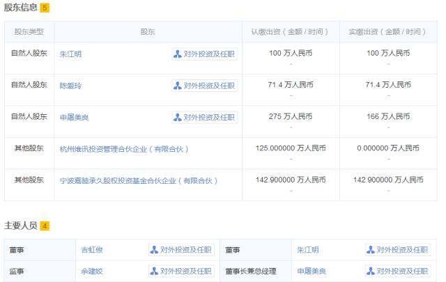 宁波嘉睦去年4月成立、7月备案,满打满算到今天成立时间也才满一年,不过,火山君(微信号:huoshan5188)注意到,这一年时间里宁波嘉睦真没闲着,投资了5家公司。如下图: