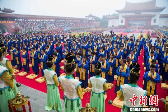 图为纪念妈祖诞辰1057周年大会暨丁酉年春祭大典在湄洲妈祖祖庙天后广场举行。 李南轩 摄