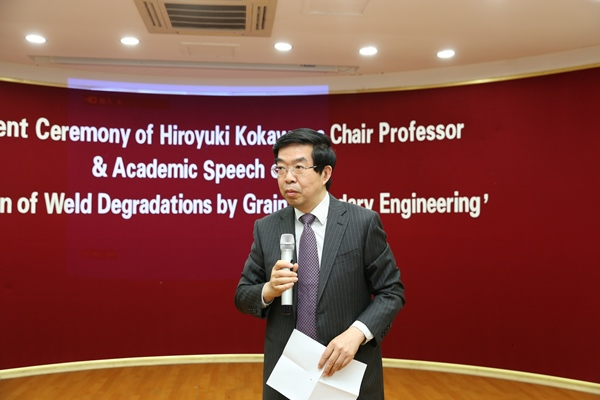 黄震在讲话中介绍到,粉川博之教授是国际焊接领域的著名科学家,他对粉川博之教授的加盟表示热烈欢迎。他指出,上海交通大学多年来坚持人才强校,坚持育才、引才和用才并重,面对中国特色世界一流大学的光荣使命和奋斗目标,提出了建立学术荣誉体系和长聘教职体系的总体方案,并稳步地推进实施。他希望粉川博之教授在不断做出新的学术贡献的同时,把育人才、带队伍作为光荣使命和崇高任务,凝聚起结构合理、水平一流的教学和科研团队,让“学在交大”成为全体交大人的价值追求,成为上海交大的新形象而不懈努力。