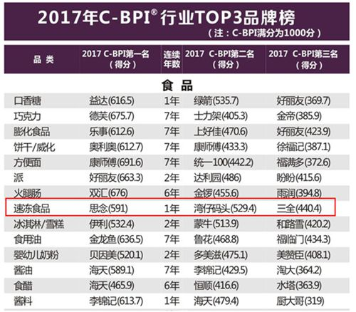 近日,2017年(第七届)中国品牌力指数(C -BPI)研究成果权威发布,思念食品荣膺速冻食品第一品牌。这也是继连续三年蝉联该排行冠军之后,思念第四次获此殊荣。