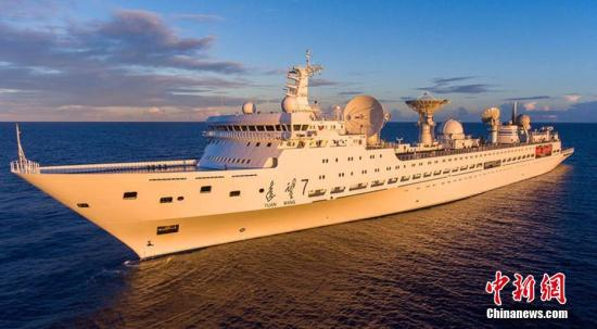 中新社太平洋4月21日电 (陈国玲 杨林海)中国远望七号测量船21日圆满完成天舟一号货运飞船海上测控任务,首次在任务中同时跟踪火箭和飞船,首次采用变航向测量。