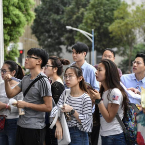 资料图:2016年11月27日,福州一公务员国考笔试考点,考生在寻找考场。张斌 摄