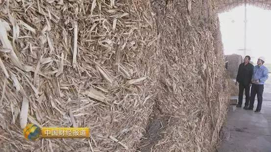 这里是袁敬伟他们的玉米秸秆原料仓库,原来他们是用秸杆做原料,生产乙醇酒精,把它添加到汽油里就可以作为车的燃料。
