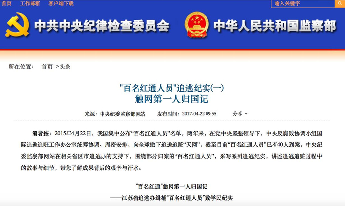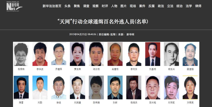 截至2017年4月22日,中国公布“红色通缉令”名单即满两年,先后从美国、加拿大、澳大利亚、新西兰等多个国家和地区追回40人。