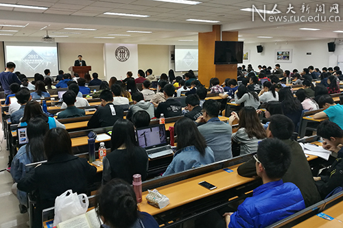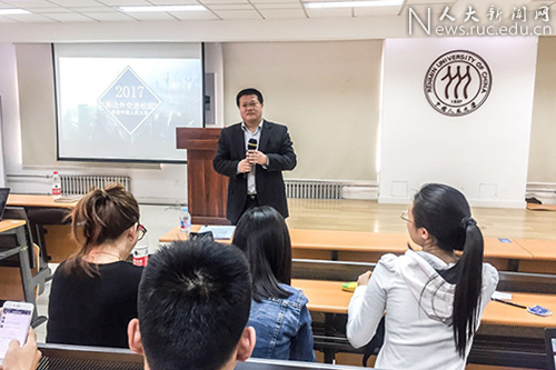 外交部干部司考录培训处副处长胡德辉向人大学生介绍了2018年外交部公务员考录的相关政策、程序,外交人员的工作内容等,重点强调了合格的外交人员应具备的核心竞争力和素质,希望同学们珍惜在校时间,在钻研专业知识的同时,注重全面提升个人能力,欢迎人大学子踊跃报考、加入外交队伍。