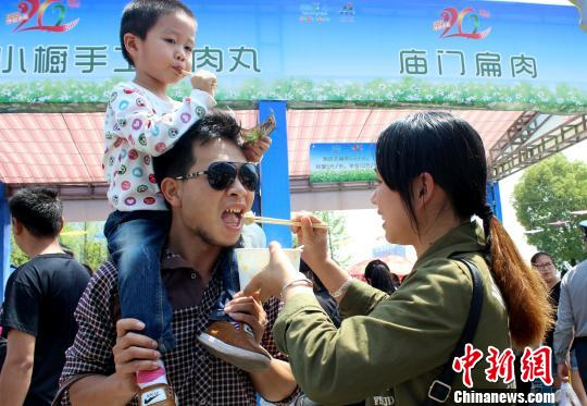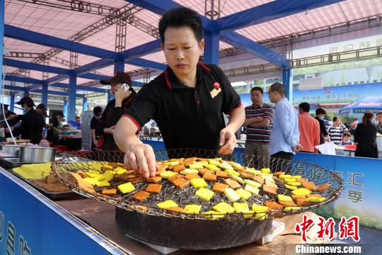 活动现场还设置了互动节目。在游戏及手工体验区内,游客可以体验印染、皮雕、手工饰品制作及指压板、九宫格足球两项互动游戏;在美食体验区内,参展商家进行了特色小吃和技艺展示。