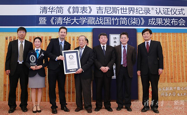 清华新闻网4月24日电 (记者 刘蔚如 通讯员 马楠)4月23日上午,清华简《算表》吉尼斯世界纪录(Guinness World Records)认证仪式暨《清华大学藏战国竹简(柒)》成果发布会在清华大学主楼接待厅举行。