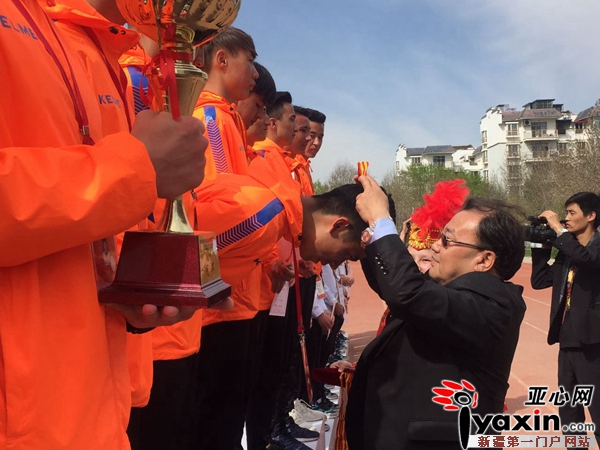 自治区教育厅厅长帕尔哈提·艾孜木为冠军队颁奖。