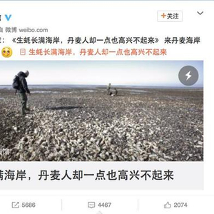 4月24日,丹麦驻华大使馆官方微博发布了一条文章《生蚝长满海岸,丹麦人却一点也高兴不起来》。