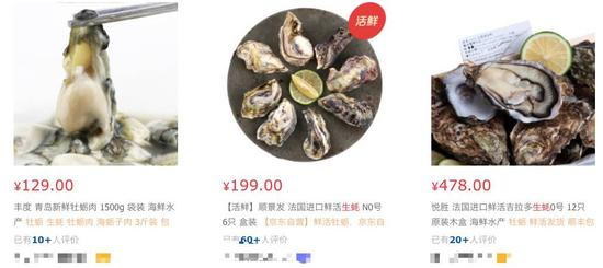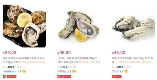由于中国生蚝产量巨大,使得国产生蚝的价格并不太贵。每经小编(微信号:nbdnews)在某电商平台上看到,国产生蚝价格普遍在5元~10元/只左右。