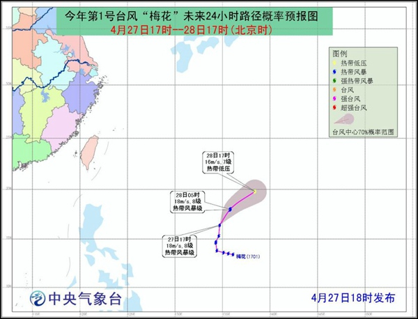 今年第1号台风“梅花”未来24小时路径概率预报图