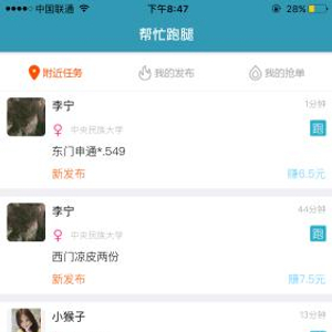 记者下载了一款号称专注于高校跑腿服务的手机软件,学生通过该平台可发布跑腿需求和相应的赏金,若有人响应接受任务,完成后即可当面获得赏金。任务内容包含取快递、买外卖、代打卡等,赏金由5元到20元不等。